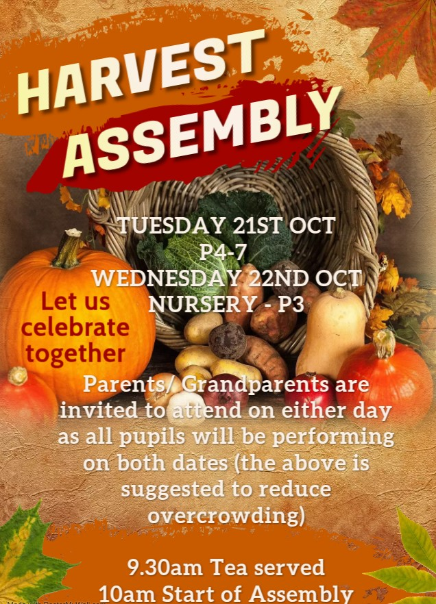 You are invited to attend our Harvest Assembly on either Tue 21st or Wed 22nd October. Please see details attached.