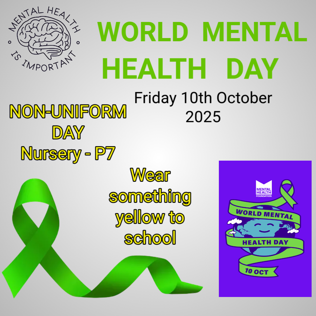 Friday 10th Oct is a non-uniform day for Nursery to P7 and wear something yellow to school to promote world mental health day.